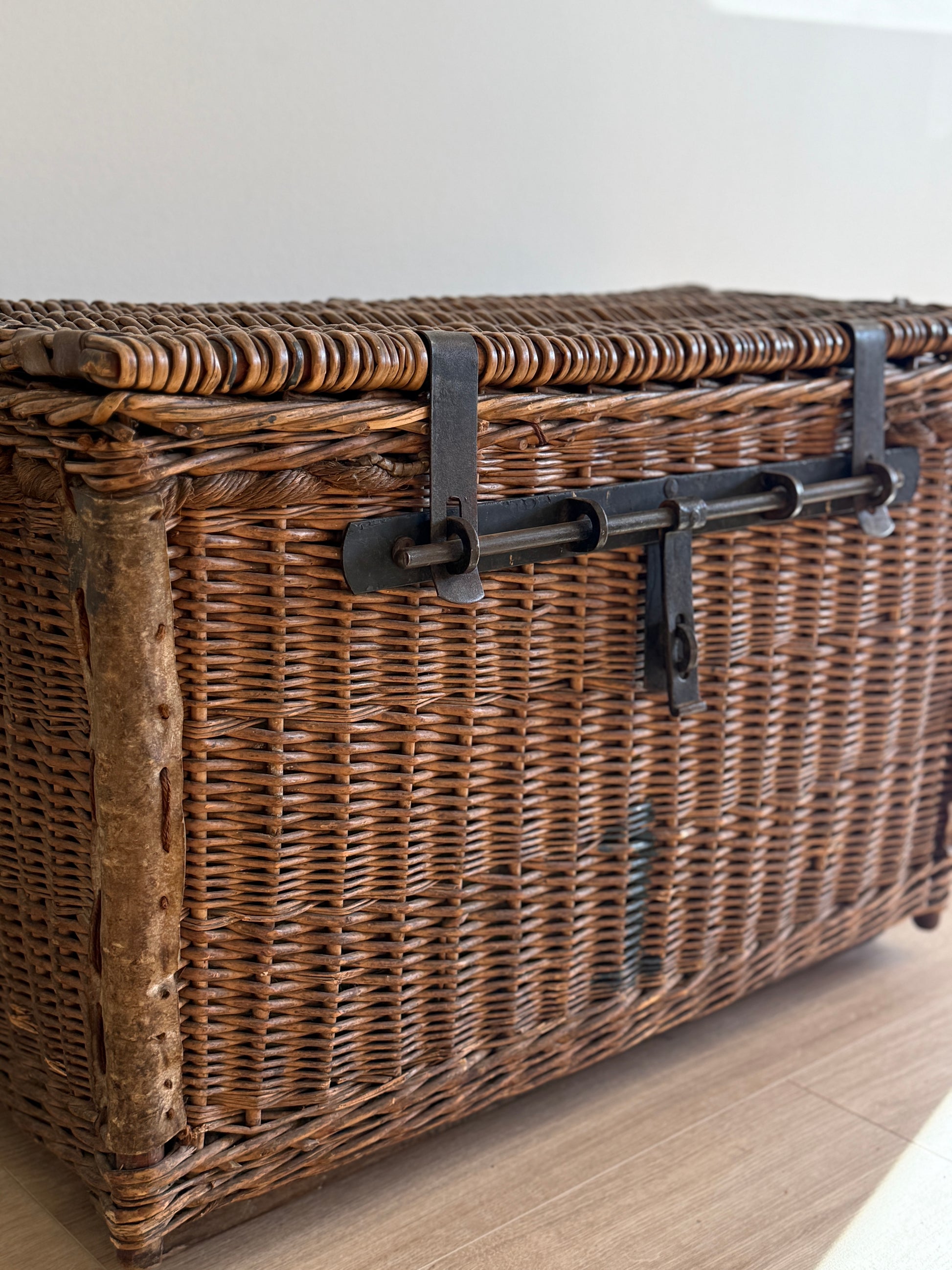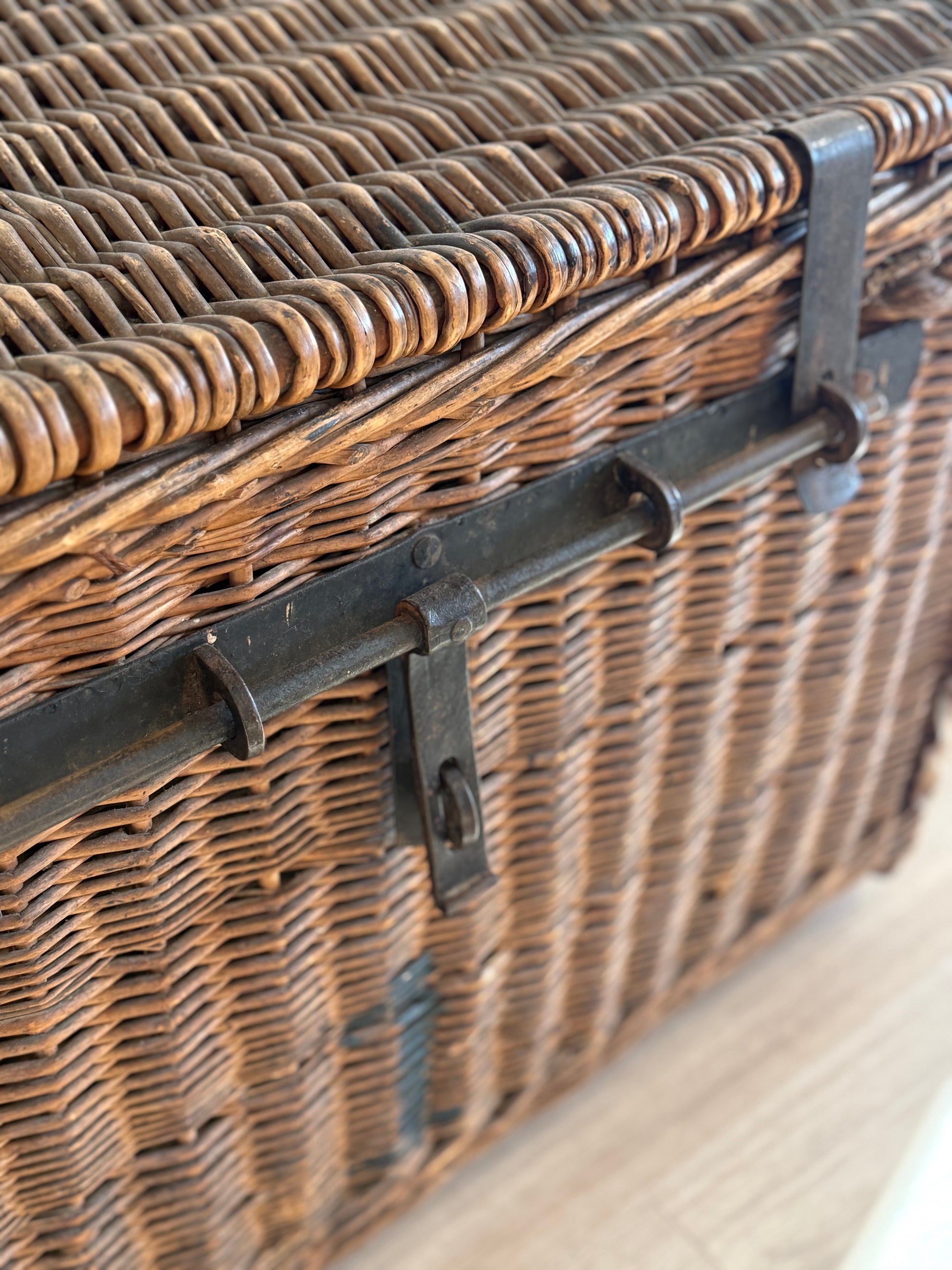 Antique English Wicker Trunk with iron Hardware