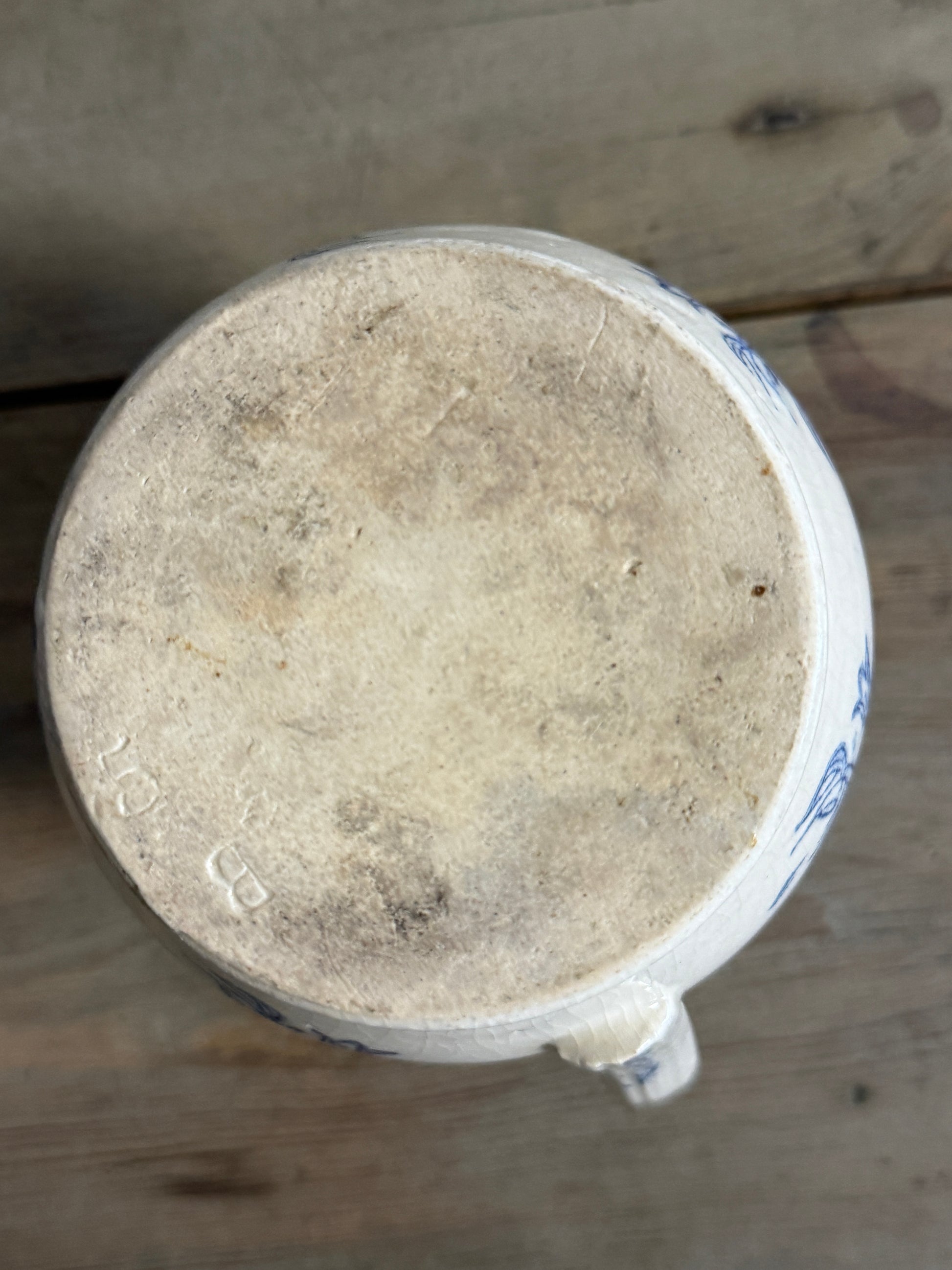 Saint Uze French Blue Transferware/Stoneware Pitcher